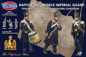 The set contains 60 figures represent Naopoleon's Middle Guard, 'Fusiliers- Chasseuirs' and 'Fusiliers-Grenadiers' but can also be used for many other of Napoleon's Elite units in campaign dress: