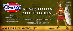 This box contains 60 highly detailed Republican Roman Italian allied legionaries wearing mixed armour styles and light infantry skirmishers.Also included are a myriad of additional parts which allows you hundreds of options when building your own army. This set is also fully supported by a range of shield transfers and banner sheets from LBMS.