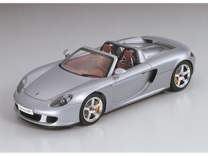 This Tamiya assembly kit recreates the Porsche Carrera GT in 1/24 scale. The Porsche Carrera GT first grabbed grabbed the world's attention when first unveiled as a concept car at the 2000 Paris Auto Show. Promoted as Porsche's next generation flagship super sports car, the Carrera GT was officially unleashed onto the international motoring market in 2003. Incorporating the latest and most extreme racing technology, the Carrera GT lines up against the impressive range of super sports cars offered by the worlds top makers, such as the Enzo Ferrari and the Mercedes-Benz SLR McLaren. Featuring a powerful 5.7 liter V10 engine, carbon-fiber monocoque chassis and push-rod suspension all wrapped up in classic Porsche style and elegance, the Carrera GT is the ultimate high-end sports car.