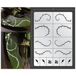 This Fallout Hobbies Rose Vines Vinyl Airbrush Stencil contains one (1) 5in x 7in low tack black vinyl Rose Vines Airbrush Stencil sheet.