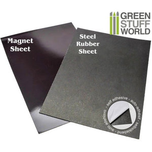 Rubber Steel sheets are impregnated with iron to allow magnets to stick to them while remaining flexible and hardwearing. Simply cut the self-adhesive sheet to size and affix to your painted movement tray to allow miniatures with magnetic bases to stick to it. They comes in handy for many craft applications, especially in wargaming where it can be used to make your own magnetic movement trays and display bases, providing far easier movement of troops around the battlefield. The colour of the sheet is quite attractive for any movement tray.