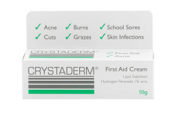 Crystaderm® treats and prevents skin infections in cuts, scratches and grazes, acne, school sores (impetigo), insect bites and minor burns.