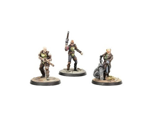 This boxed set contains three 32mm scale multi-part high quality resin Raider miniatures, each with a unique scenic base, to allow players to expand their Fallout: Wasteland Warfare games.