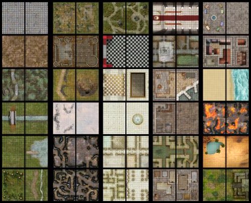 Designed to spark the imagination, as well as illustrate encounters using the handy grid format, the Giant Book of Battle Mats offers endless flexibility. You can play each map page individually or use the lay flat format to play across the complimentary opposing mats as one larger two-page spread version.