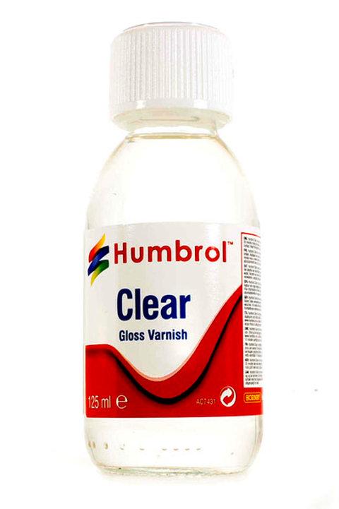 A thin clear varnish that goes on clear and stays clear. Humbrol Clear drys to a low gloss finish, a higher gloss finish can be achieved by applying further thin coats.