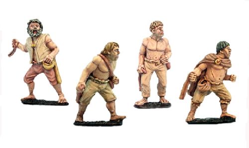 Warriors of Ancient and Medieval Ireland. Irish Warriors with slings. 8 figures per pack, 2 of each type illustrated. Supplied unpainted. Painted examples provided by Mark Dixon