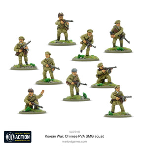 Much like their Soviet counterparts, the CCP Army learned the valued lessons of massed assaults with submachine guns. In a PVA rifle company, two submachine squads were in the company headquarters, providing firepower when needed. These submachine gun squads served as scouts, point security, lead in the attack, and could also be divided out if the commander needed. A mix of weapons were issued, the standard PPSh and the US Thompson submachine gun from WWII.