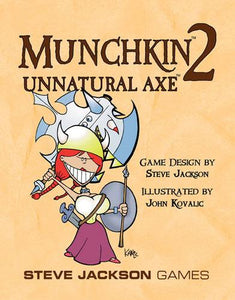 Munchkin 2 Unnatural Axe is a supplement to Munchkin; you will need the original game to play. Or you could add it to any of the other Munchkin game sets instead. It'll work, and it'll be silly, and that's what we all want here.