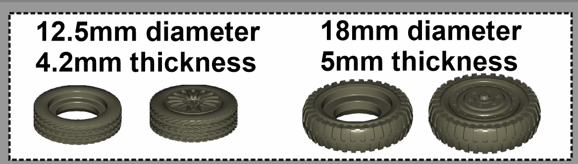 2 Hubcapped wheels of 12.5 x 4.2mm