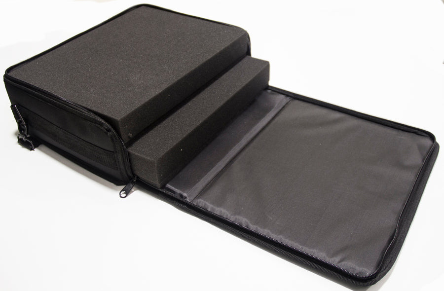 When you first receive your bag, you'll notice there is an upper foam topper laying on top. This thin foam will protect models held in the top tray from rubbing against the inside of the bag. Using scissors, round off the corners of the upper foam topper with scissors. This will make it easier to open and close the bag and less likely for the foam topper to catch in the zip.