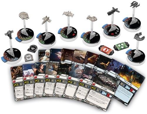You'll find eight irregular squadrons, including some of the Star Wars galaxy's most recognizable freighters, patrol craft, and bombers, each of which can be represented in your games by either a non-unique squadron card or flown by an ace. Like the squadrons from the Core Set and the first wave of expansions, these come unpainted, but are presented in colors that complement their fleets.