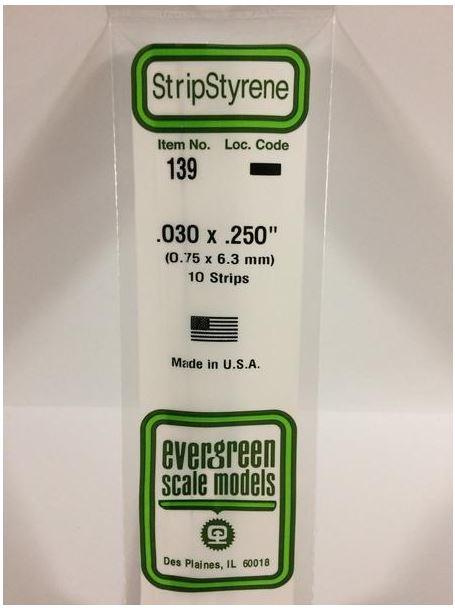 Stripstyrene White 0.75 x 6.3mm (10) 139