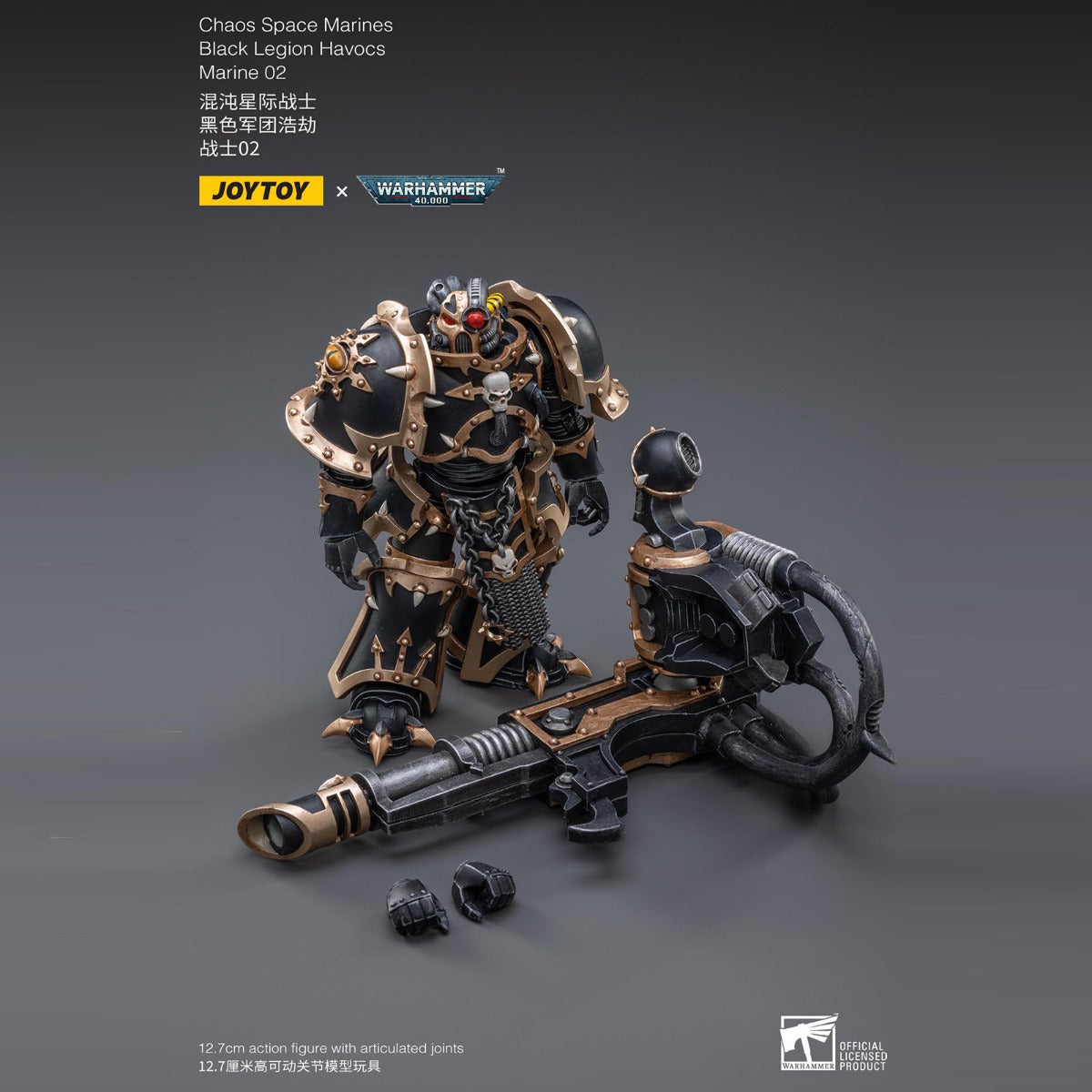 Joy Toy brings the Black Legion Havocs Marine to life with this 1/18 scale figure. The Black Legion is a Traitor Legion of Chaos Space Marines that is the first in infamy, if not in treachery, whose name resounds as a curse throughout the scattered and war-torn realms of Humanity. Recreate the most important battles with this highly detailed and articulated figure.