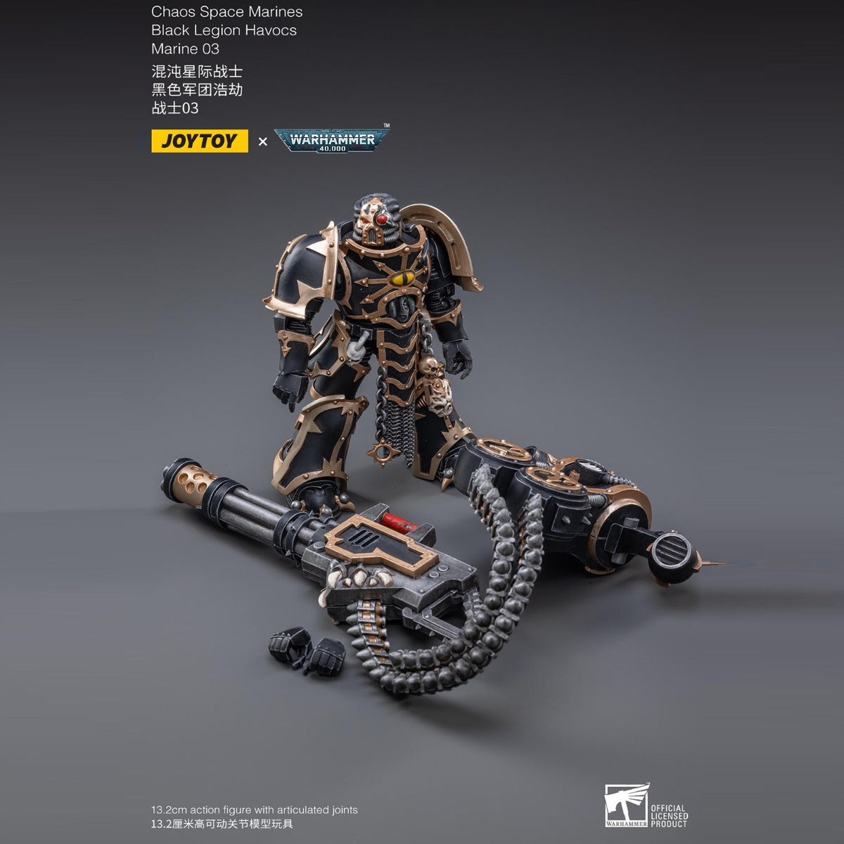 Joy Toy brings the Black Legion Havocs Marine to life with this 1/18 scale figure. The Black Legion is a Traitor Legion of Chaos Space Marines that is the first in infamy, if not in treachery, whose name resounds as a curse throughout the scattered and war-torn realms of Humanity. Recreate the most important battles with this highly detailed and articulated figure.