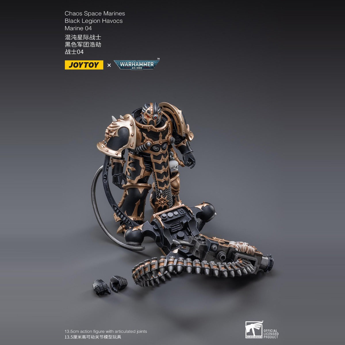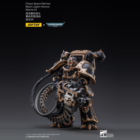 Joy Toy brings the Black Legion Havocs Marine to life with this 1/18 scale figure. The Black Legion is a Traitor Legion of Chaos Space Marines that is the first in infamy, if not in treachery, whose name resounds as a curse throughout the scattered and war-torn realms of Humanity. Recreate the most important battles with this highly detailed and articulated figure.