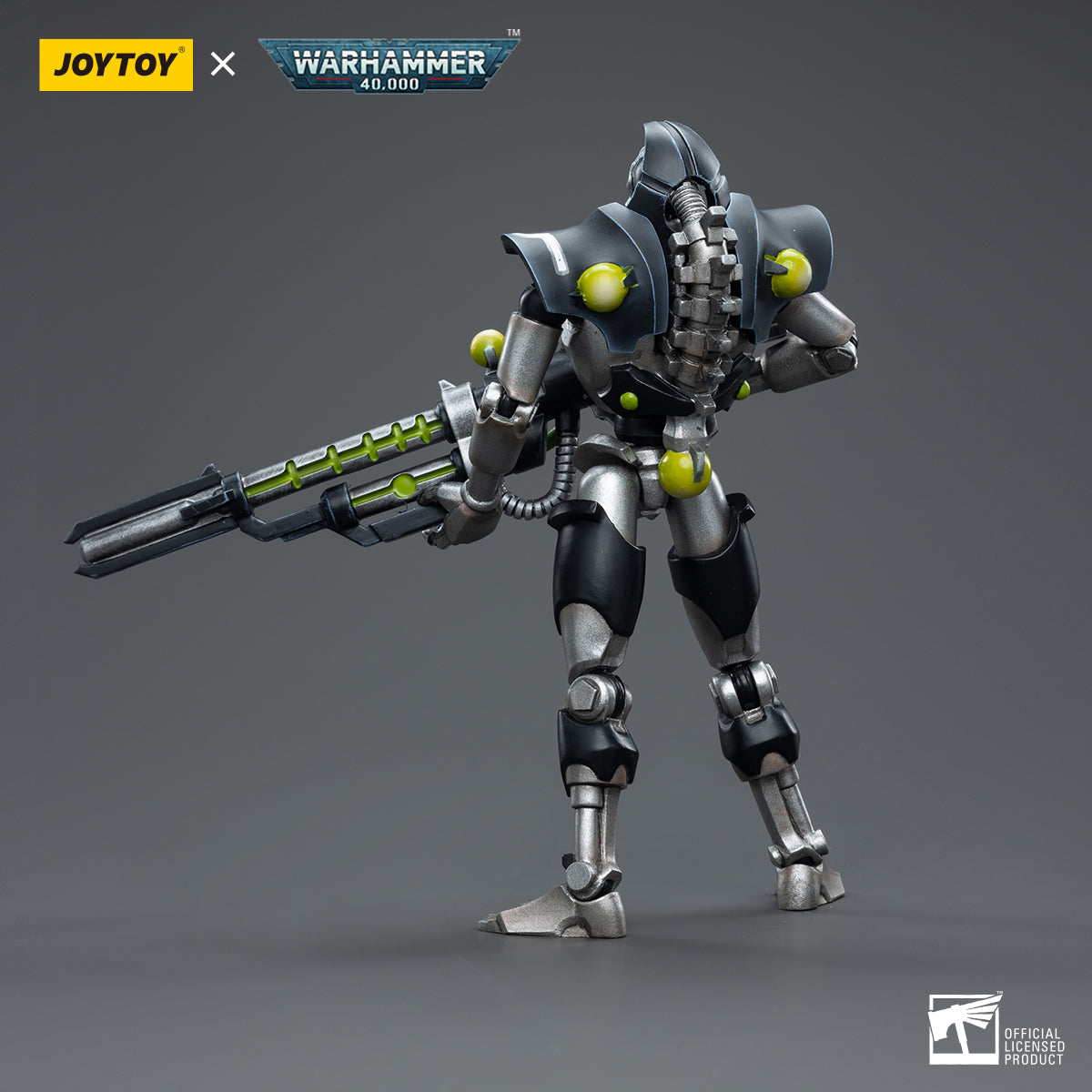This is a 1/18 scale highly detailed, articulated figure based on Warhammer 40k's Deathmark Necron from the Sautekh Dynasty. The Deathmark Necron figure comes with several interchangeable parts and accessories, opening the door to a plethora of different and unique display opportunities.