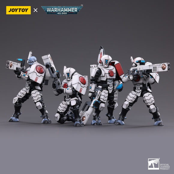 Joy Toy brings the T'au Empire Fire Warriors from Warhammer 40k to life with this new series of 1/18 scale figures. Each figure includes interchangeable hands and weapon accessories and stands between 4" and 6" tall.