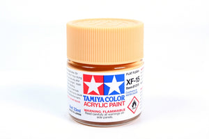 Tamiya acrylic paints are made from water-soluble acrylic resins and are excellent for either brush painting or air-brushing. These paints can be used on styrene resins, Styrofoam, wood, plus all of the common model plastics. The paint covers well, flows smoothly and can be blended easily. Prior to curing, paint can be washed away with plain water.